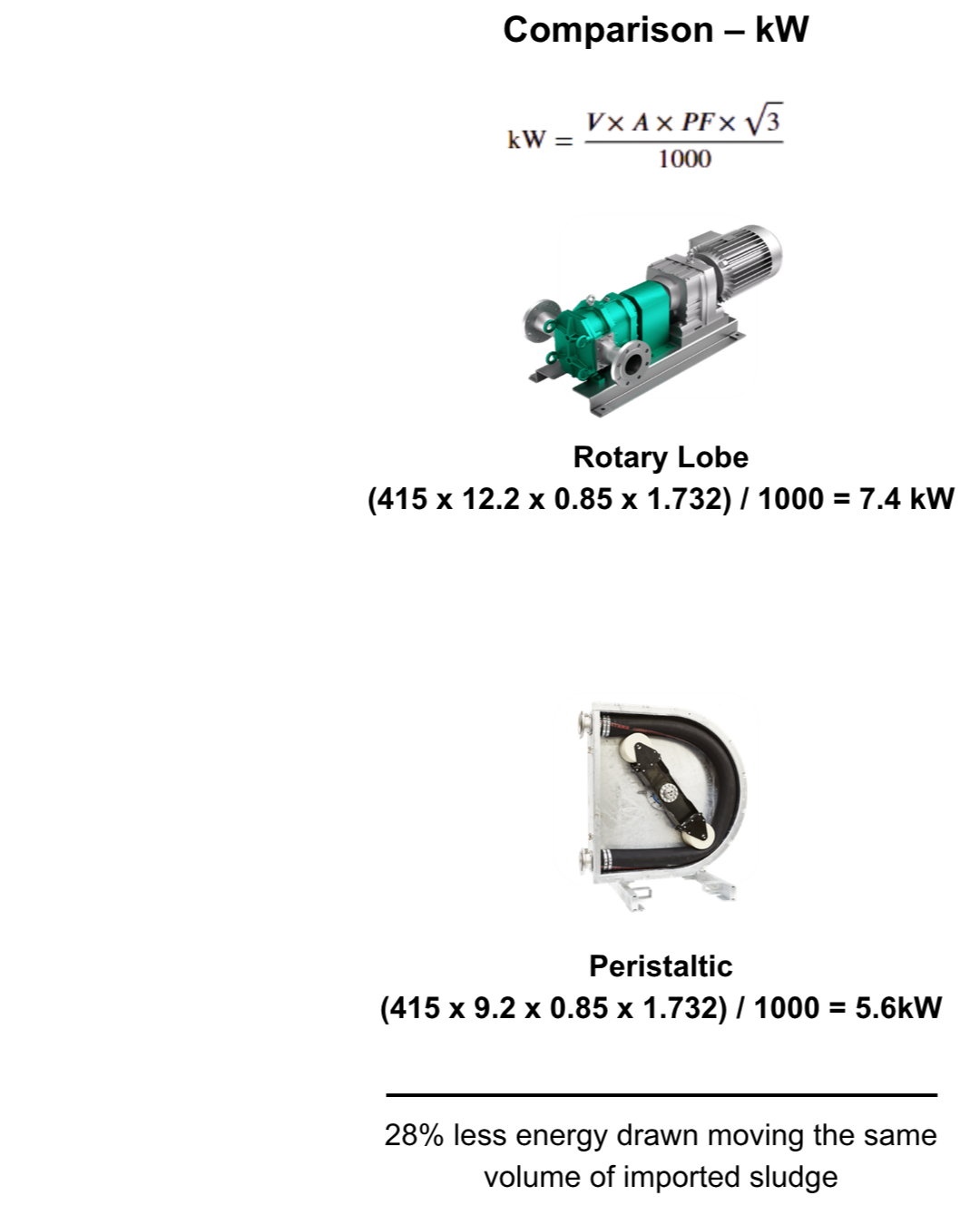 Atlantic Pumps and the water company agreed on a hired trial to put the concept to the test. The client monitored the power consumption of both the lobe pump and the peristatic over 7 days each, using a data logger and software from Fluke.